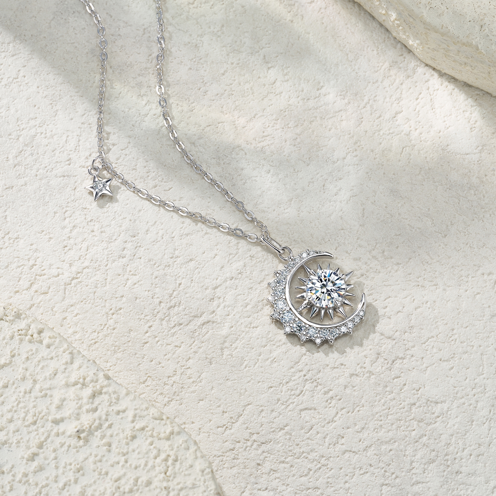 A Luxurious And Fashionable Minimalist Jewelry Pendant Necklace Featuring Top-quality Moissanite, Made Of S925 Silver Electroplated With Platinum.