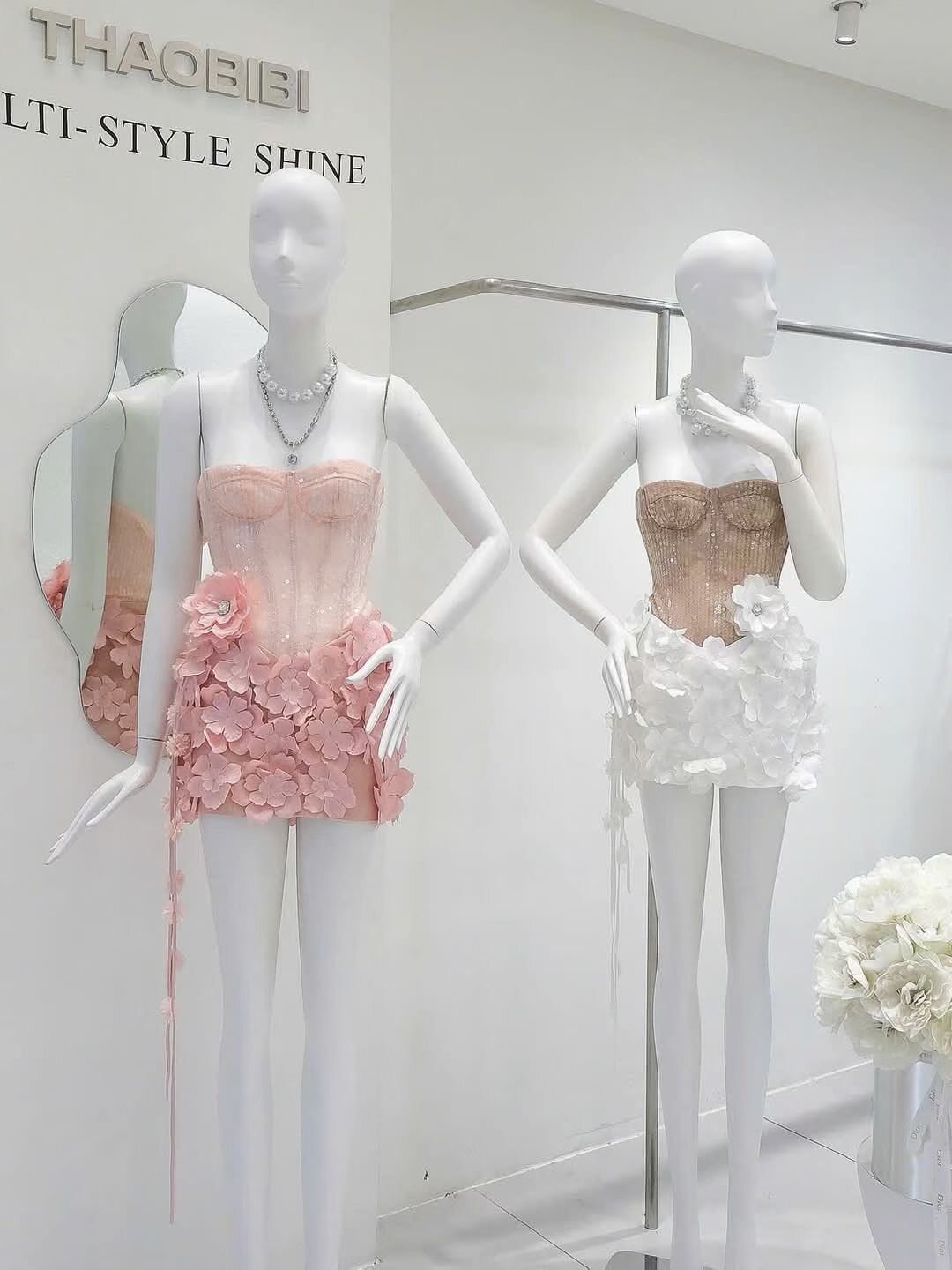 Womens Strapless Sequin Flower Dress