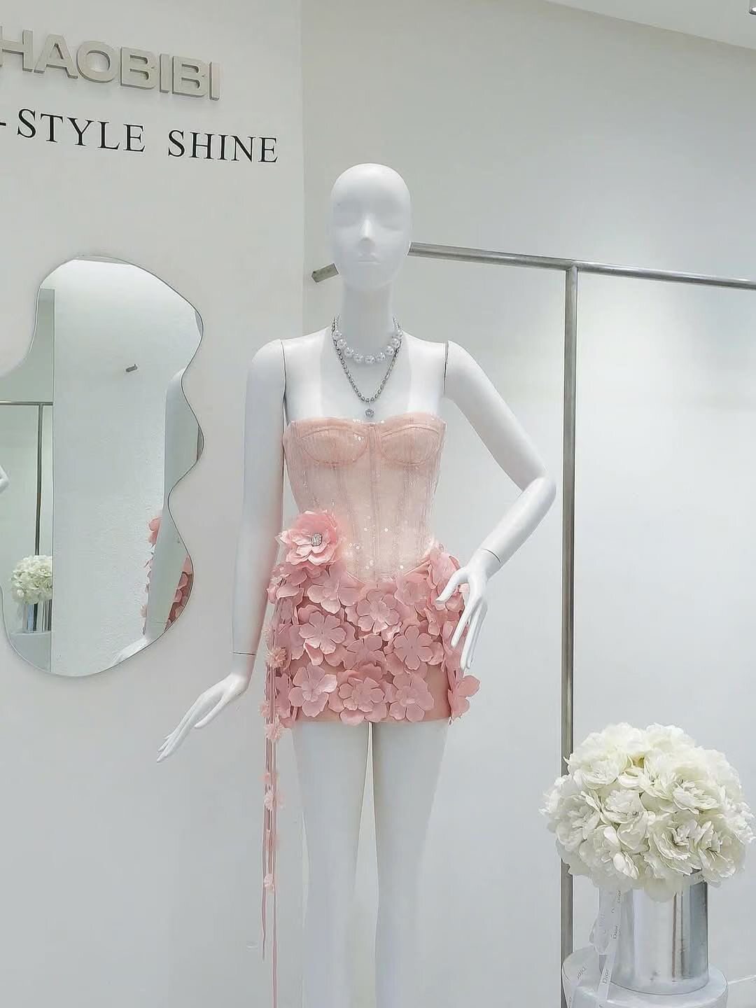 Womens Strapless Sequin Flower Dress